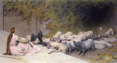 Circe turns Odysseus crew into pigs. He rescues them then stays a year with Circe.