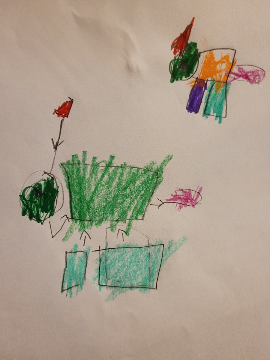 Alex made three pictures lately that I really like. I like the kite picture of course. I do like kites. I even wrote a song from the point of view of a kite many years ago. It’s goofy but it’s proof of a lifelong admiration. I like the tree in the picture a lot as well.
